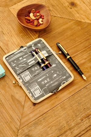 【文具王】高畑正幸さん( @bungu_o )デザインの”わかる人にはわかる日本の文具”柄のペンケース。