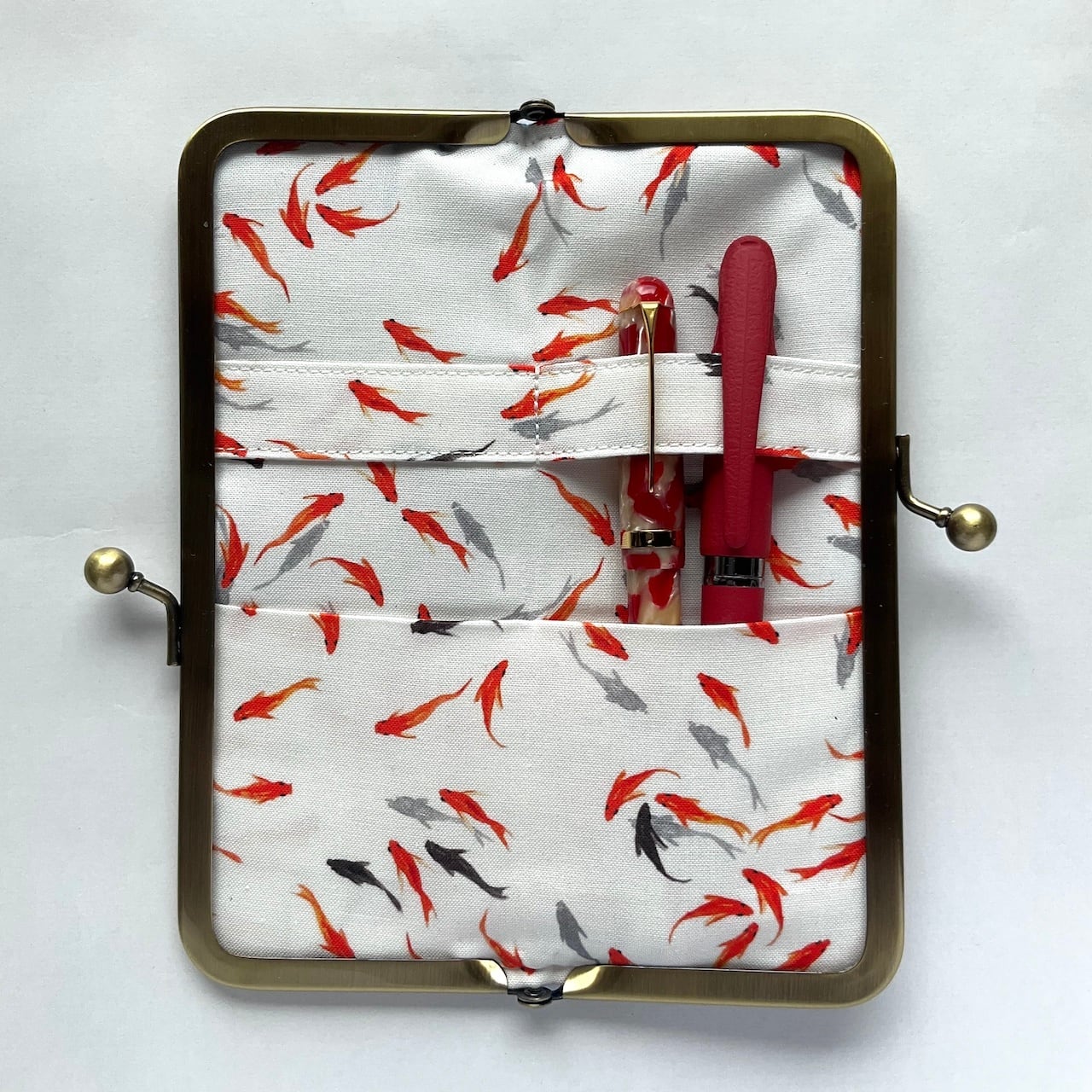 一般的ながま口のペンケースとは違う作りなので、大きく開きペンが取り出しやすいです。